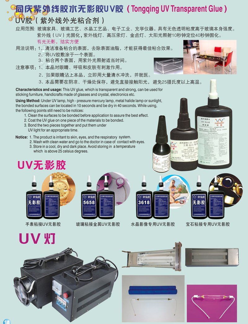 主要品種有:1、丙烯酸酯膠(瞬間膠) 502、AA超能膠、OK201、三秒、101修鞋膠、冬膠王、精品三秒等。2、電子工業類用膠系列:特種膠粘劑(UV無影膠、有機玻璃(壓克力)新一代粘合劑、有機玻璃粘合劑、ABS塑 料膠等)。3、環氧AB膠、厭氧膠、改性丙烯酸酯膠(AB-302)、 青紅膠、噴膠、水晶滴膠等。除以上產品,本公司還有特殊材質,如要求的高技術產品,只要您把需粘接的材質寄予本公司,我公司技術部三天內便可回復解決結果。誠信經營是我們永遠不變的宗旨,精益求精是我們一貫的追求,我們希望能以優質的產品質量,優惠的價格,完善的服務,來滿足各界用戶的需求!